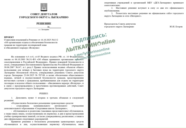 "О внесении изменений в Решение от 16.10.2025 №13/2 «Об организации отдыха и обеспечении безопасности граждан на территории лесопарковой зоны и обводненного карьера «Волкуша».
