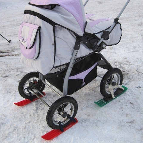 А ещё можно приделать лыжи как на фото или как на некоторых санках. Продаются на маркетплейсах. Всем комфортных прогулок!
