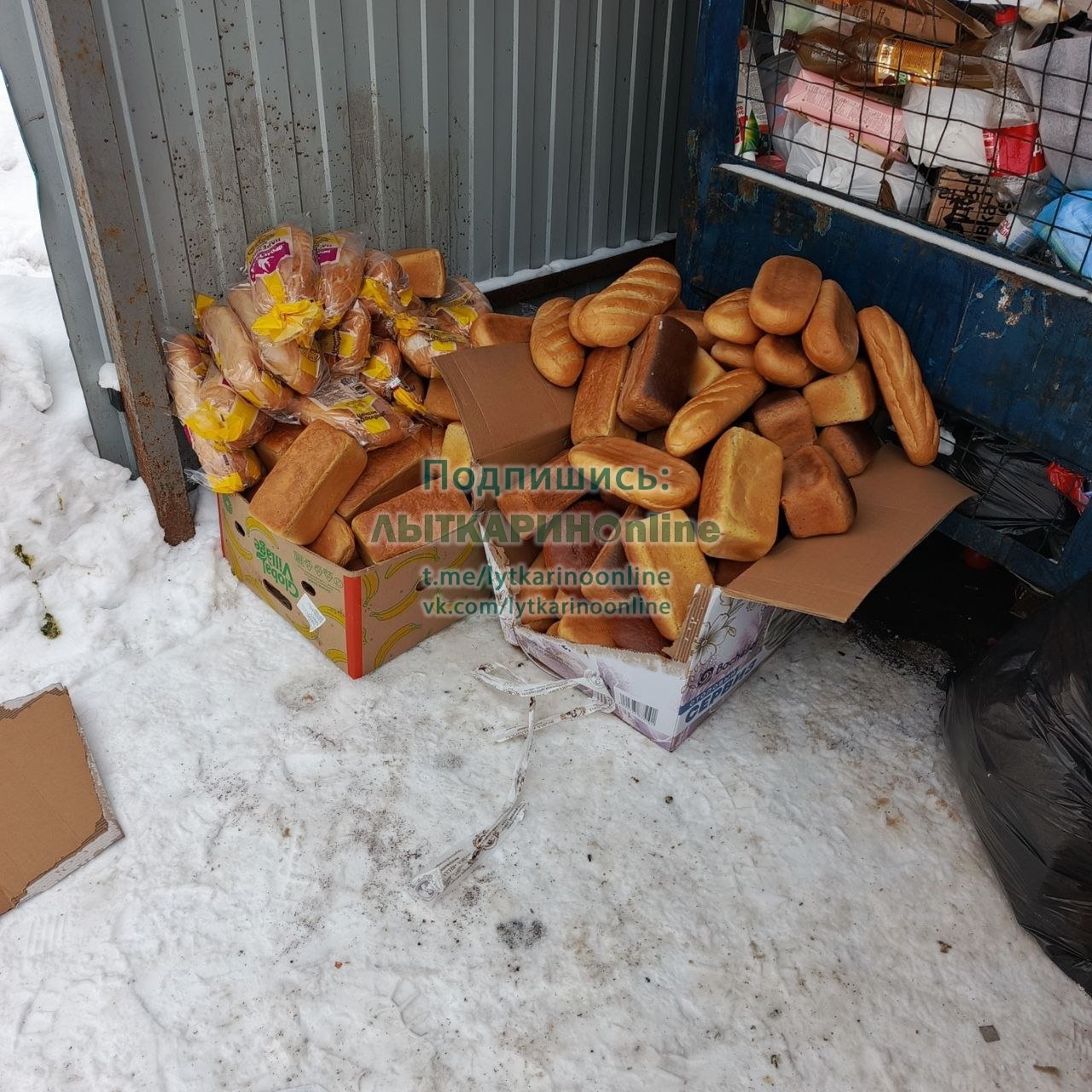 Это мусорка сзади Пятерочки на площади. Фото сегодня и вчера. Похоже это каждый день так. Разве нельзя создать фонд, куда магазины будут приносить товар с маленьким сроком годности разве можно вот так выбрасывать хлеб, когда есть бедные и голодные люди?