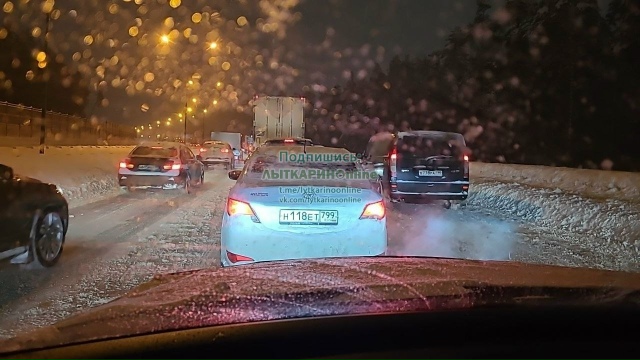 Сегодня целый день снег, история повторяется. Съезд на Новорязанку стоит, на самой Новорязанке авария. Светофор на Колхозной держит все направления, в других местах пока терпимо. По пьяной хорошо. Если не встанет где-то фура, то можно проскочить, а встать она может в любой момент.