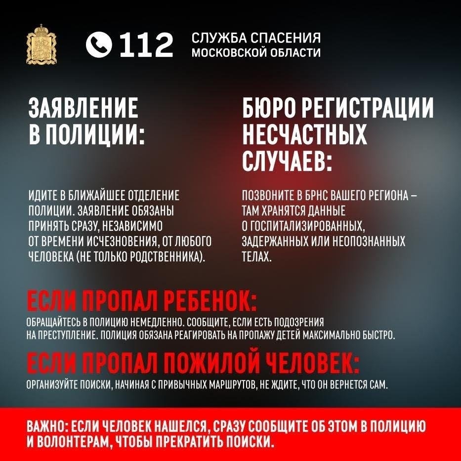 Если человек не выходит на связь — действовать нужно немедленно. В поиске действует «правило первого часа» — время, когда шансы найти человека живым и здоровым максимальны.