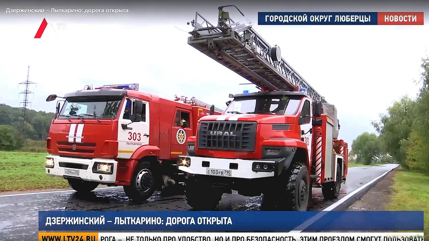 Телеканал "ЛТВ" Дзержинский – Лыткарино: дорога открыта "...Дорога отличная, очень качественно уложена. Современная. Очень живописная, вдоль реки...В связи с тем, что в городе Дзержинский пожарная часть городская отсутствует, перекрытие территории осуществляется из соседних городов: города Люберцы, города Лыткарино. А из города Лыткарино без этой дороги пожарное подразделение прибывали в город Дзержинский более чем за 40 минут. Сейчас данное время сократится минимум в два раза." https://vkvideo.ru/video-42527174_456244012