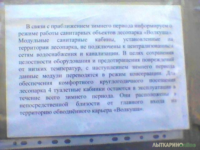 Новая малява лыжникам, не желающим платить 1000 р. от администрации посетителям Волкуши на двери туалета. из серии "не будут брать - отключим газ! " https://vk.com/video-17833376_456260739 А на рекламе производителя кабинок сказано, что они выдерживают любой мороз. Кроме того, это прямо противоречит обещанию губернатора Воробьева Президенту Путину: ВОРОБЬЕВ:"...И однажды я пришел к президенту Владимиру Путину и говорю, что у нас в области 43% местности — это лес. В лесах люди отдыхают дикарем. Не надо даже объяснять, что это значит. Интересно, как ты будешь отдыхать в лесу, если там нет туалета? Просто интересно, как ты будешь планировать свой отдых», — рассказал Воробьев. https://riamo.ru/news/zdravoohranenie/vorob...?from=inf_cards