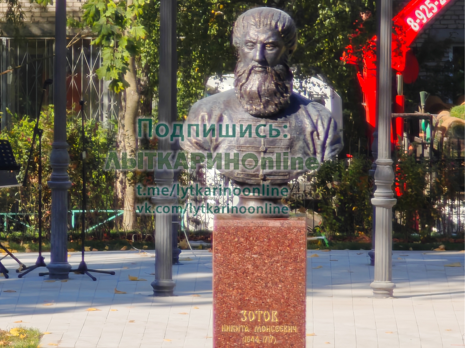 Сегодня в музейном парке в 13:00 состоится праздничная программа и репетиция открытия нового сквера. Уже установлен бюст первого владельца усадьбы "Лыткарино" - Никиты Зотова, наставника Петра I.