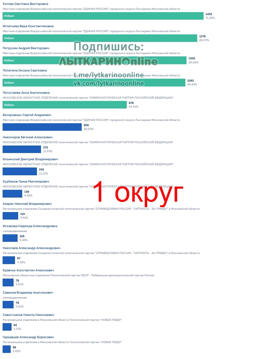Итоги выборов в совет депутатов города Лыткарино 2025.