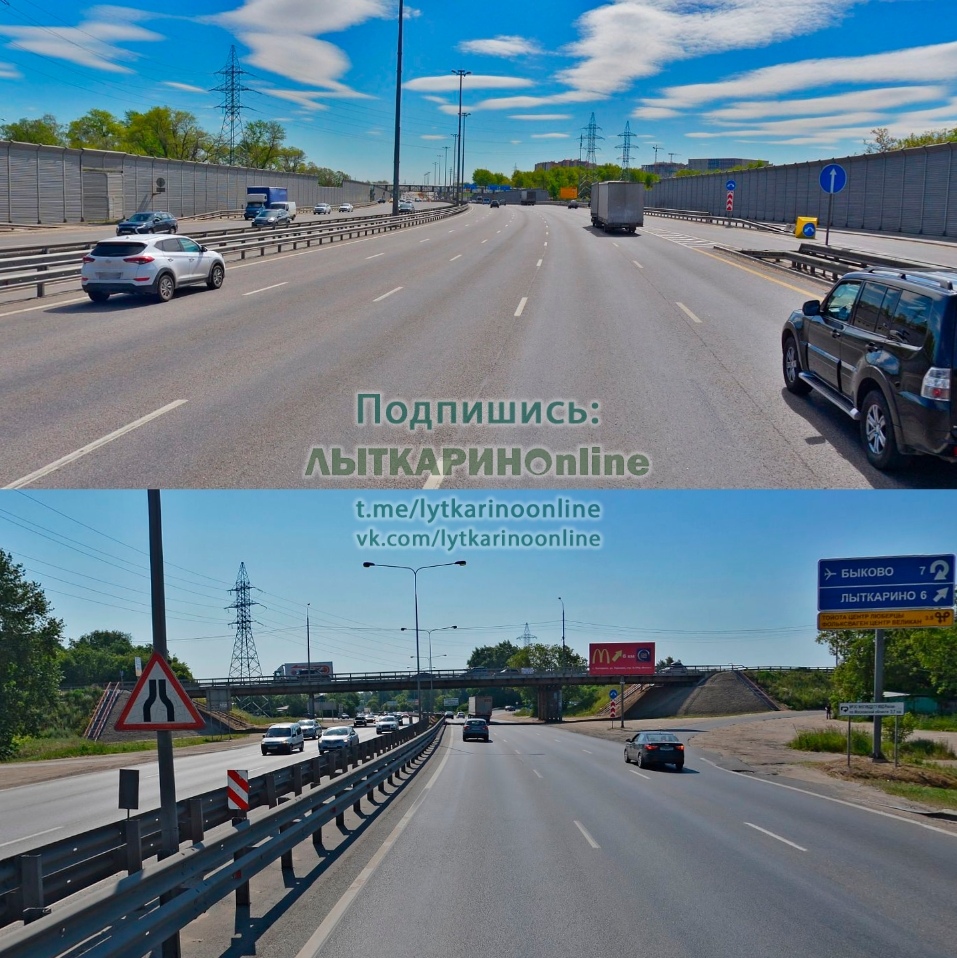 Специально для тех, кто не может понять сделали сравнение как было и как стало. Новорязанское шоссе сильно расширили! В сторону области в этом месте добавилось 4 ряда, в сторону Москвы - 2 ряда.