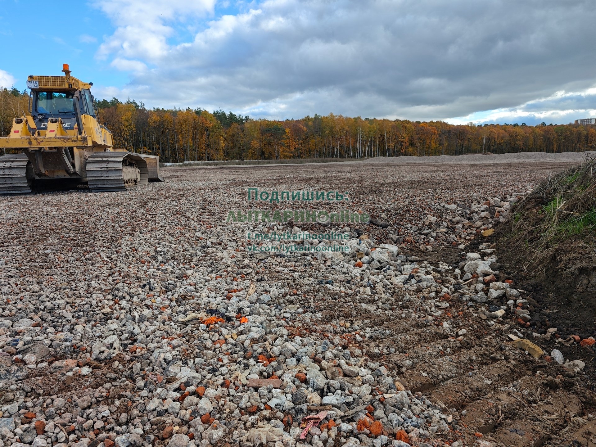 На пьяной дороге за навалом земли огромная площадь уже отсыпанная боем. Что-то тут будет...
