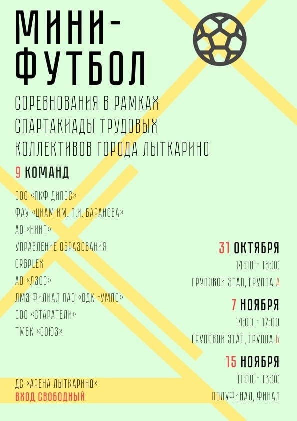 Турнир по мини-футболу основных предприятий города. Приходите болеть за своих или просто за красивый футбол!