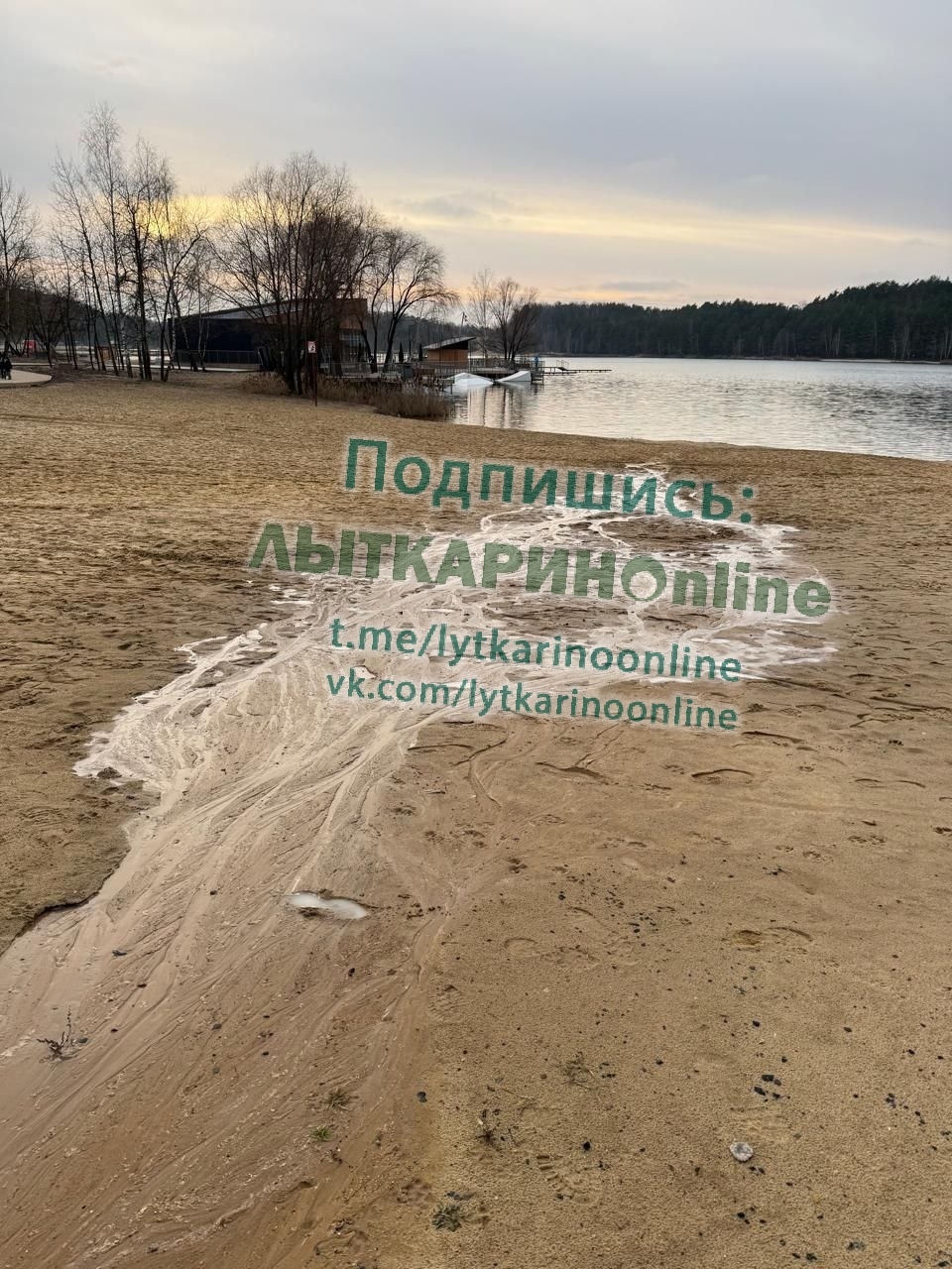 Добрый день. По уточнённой информации сообщаем, что 07.12.2025 выявлена и устранена течь на трубе водоснабжения указанного объекта, расположенного на территории лесопарка Волкуша. Фото состояния пляжа на 09.12.2025 прилагаем. Горячая линия по вопросам обслуживания лесопарка «Волкуша»: 🔹+7 (495) 552-46-50 🔹+7 (925) 249-91-21 С уважением.