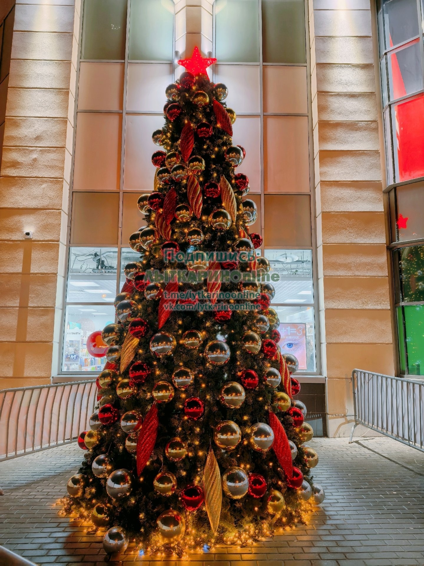Восхитительная ель и очень красиво украсили входную группу в ТЦ Весна.