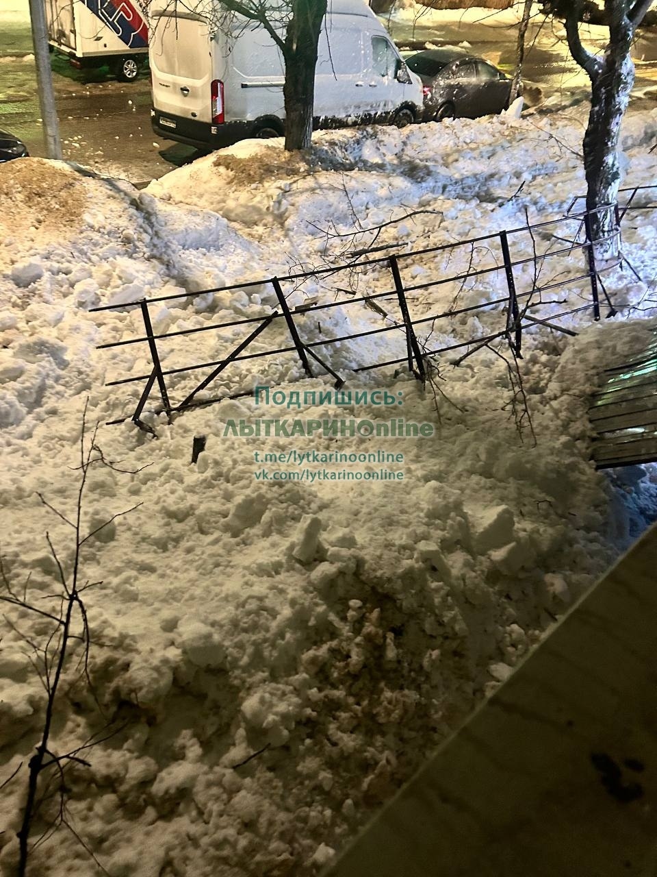 На Советской у рынка снег сошел вместе с ограждением. Будьте осторожны!