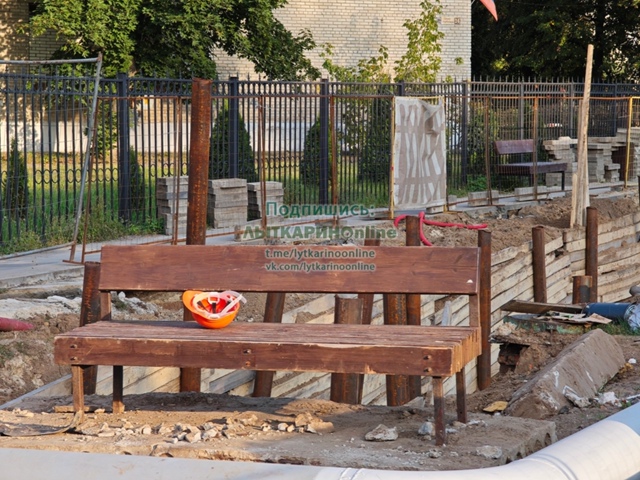 Работы на Спортивной продолжаются. Очень понравилась эта лавка, стоящая на островке посередине раскопок 😀