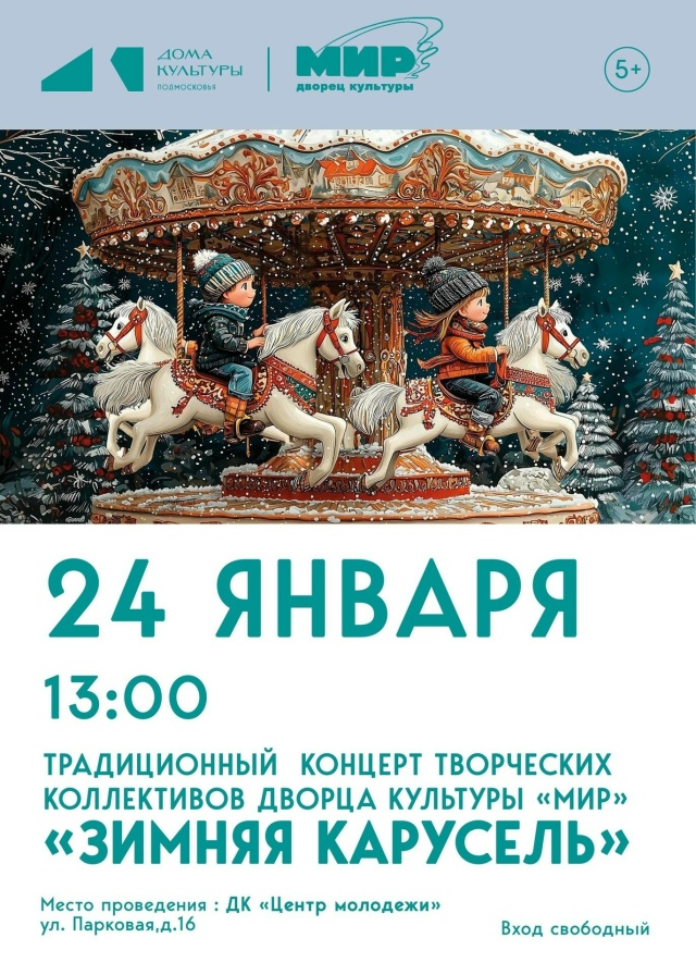 Концерт творческих коллективов дворца культуры "Мир" "ЗИМНЯЯ КАРУСЕЛЬ" 24 января в 13:00 в ДК "Центр молодёжи"