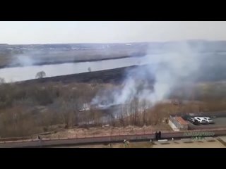 Поля продолжают гореть. Трактор прокопал защитную полосу - помогает, но не везде. Прислали Лиза и Александра Видео:  Видео: