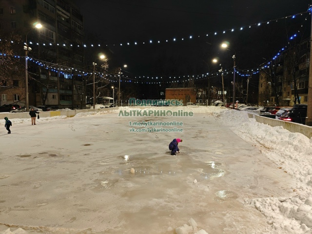 Как и обещали, отчëт по каткам. На Парковой каток пока не готов. Обещают к выходным доделать, как раз морозы будут, успеет замëрзнуть. Зато светло и красивые лампочки. На Полëте наоборот - идеальный лëд и темнота. На 2 квартале всë хорошо: и лëд и свет.