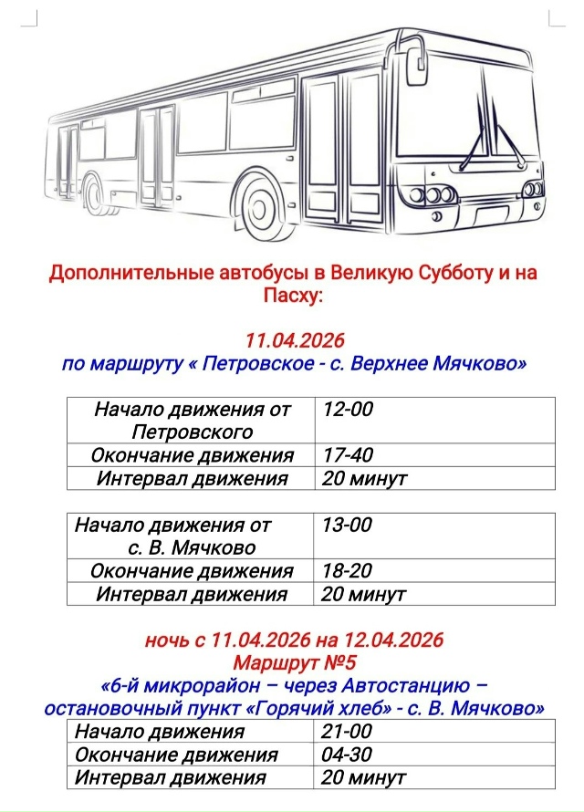 Дополнительные автобусы в Великую Субботу и на Пасху в Верхнее Мячково.
