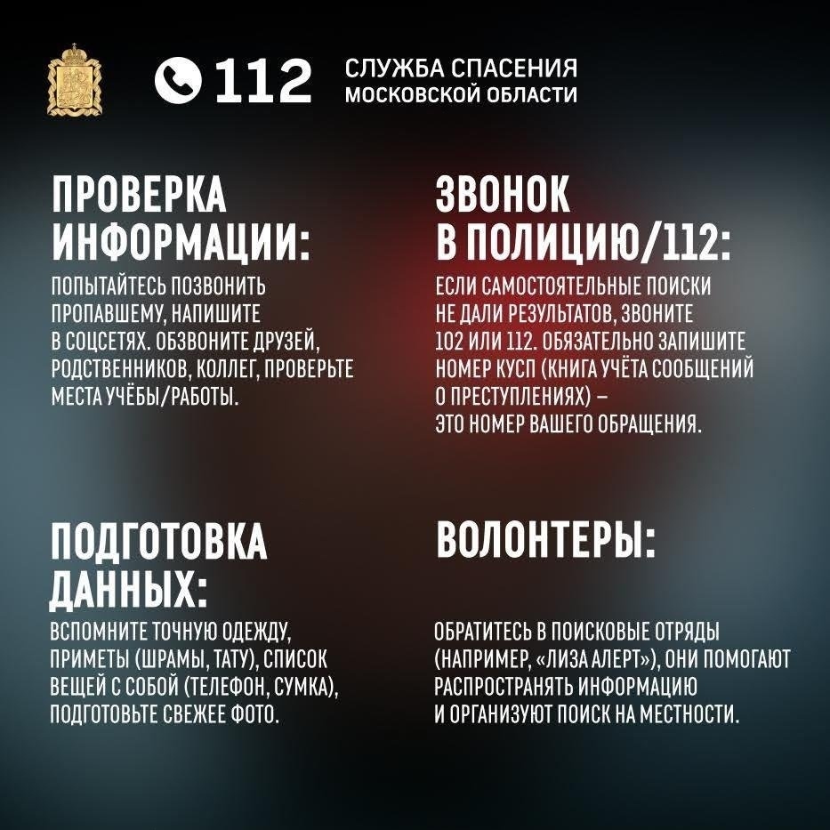 Если человек не выходит на связь — действовать нужно немедленно. В поиске действует «правило первого часа» — время, когда шансы найти человека живым и здоровым максимальны.