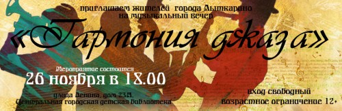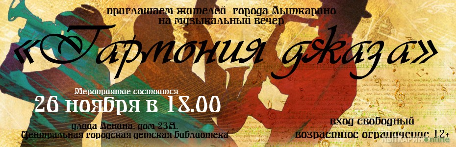 Центральная городская детская библиотека вход свободный Централизованная библиотечная система города Лыткарино приглашает жителей города на музыкальный вечер "Гармония джаза".