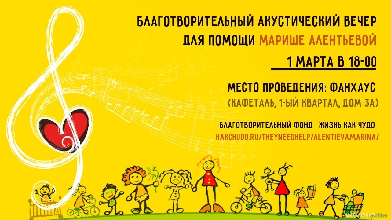 funHouse, 1 квартал, д. 3А (Кафеталь) вход свободный Первый вечер весны в клубе funHouse состоится акустический вечер, призванный собрать всех, кто неравнодушен к беде, случившейся с маленькой Мариной
