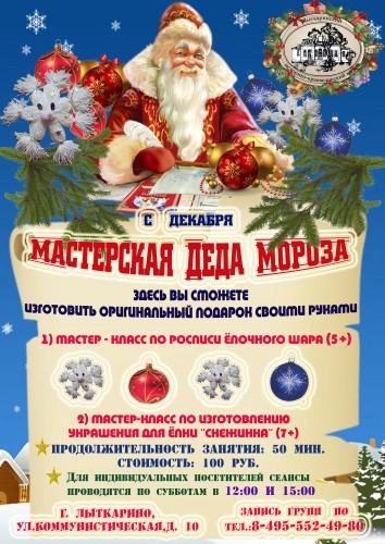 Афиша > Приглашаем в «Мастерскую Деда Мороза»!  1307  0 | |