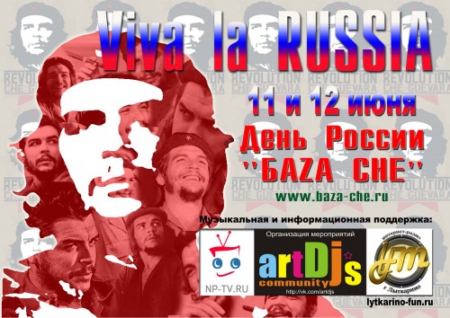 11 и 12 ИЮНЯ днем, база отдыха "Территория Че Гевара" (карьер "Волкуша", VIP-пляж) приглашает всех на вечеринку "Viva La RUSSIA" 12 июня организуем турнир по пляжному футболу. Музыкальное сопровождение от L-FM.