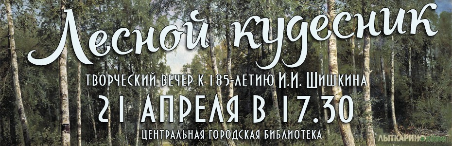 21 апреля в 17.30 в Центральной городской библиотеке состоится творческий вечер “Лесной кудесник”, посвященный русскому живописцу Ивану Ивановичу Шишкину.