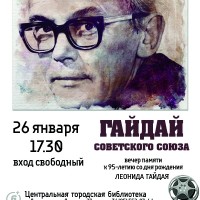 Центральная городская библиотека вход свободный Центральная городская библиотека приглашает жителей Лыткарино на вечер памяти «Гайдай Советского Союза», посвященный жизни и творчеству Леонида Гайдая. Мероприятие приурочено к 95-летию со дня рождения выдающегося кинорежиссёра. Мероприятие состоится в Центральной городской библиотеке 26 января в 17.30. Вход свободный, 6+