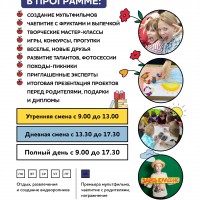 Лагерь Мультистория работает ВСЁ ЛЕТО! Первая смена с 9.00 до 13.00 Вторая смена с 13.30 до 17.30 (выбирайте любую или посетите обе сразу!)