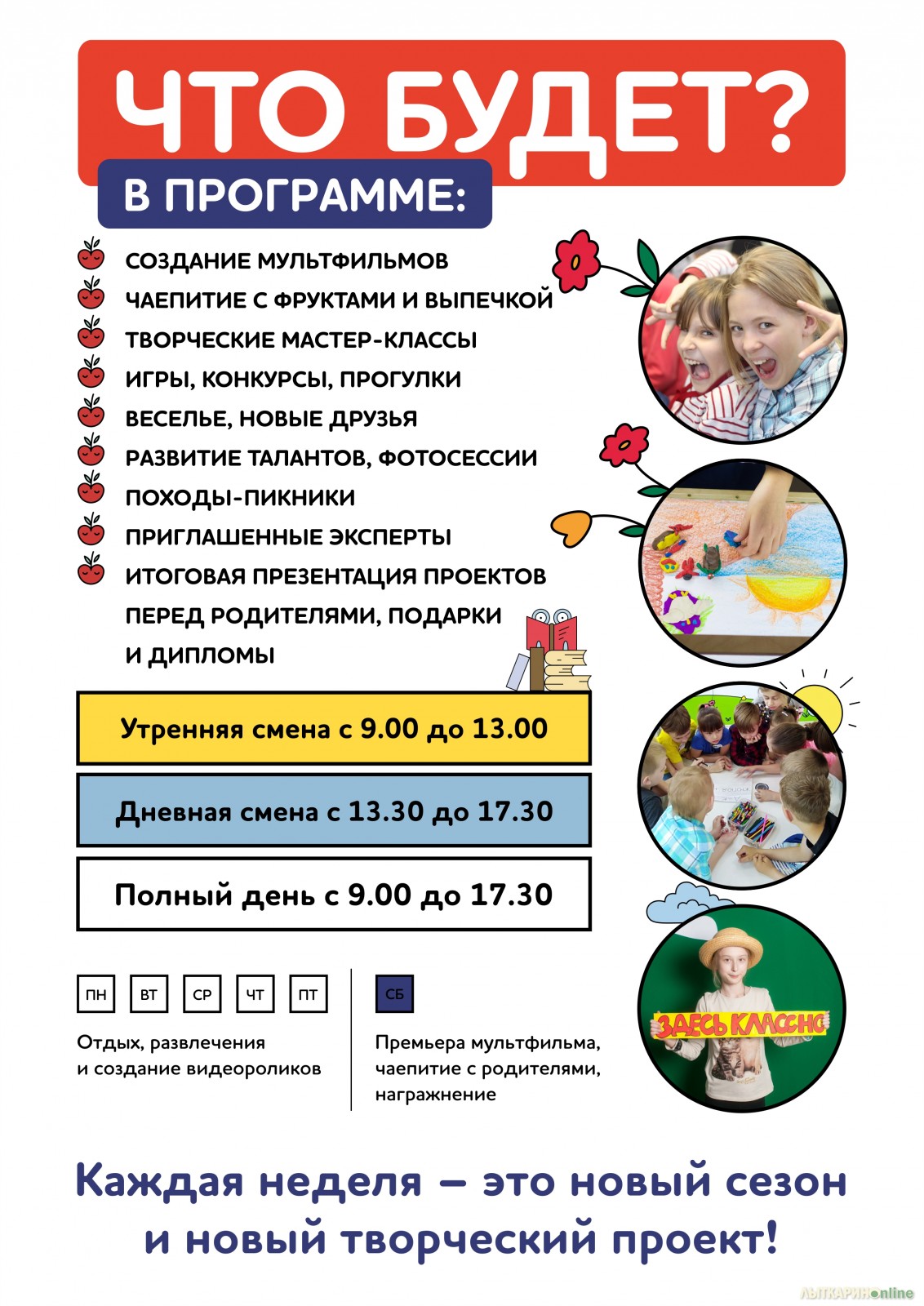 Лагерь Мультистория работает ВСЁ ЛЕТО! Первая смена с 9.00 до 13.00 Вторая смена с 13.30 до 17.30 (выбирайте любую или посетите обе сразу!)