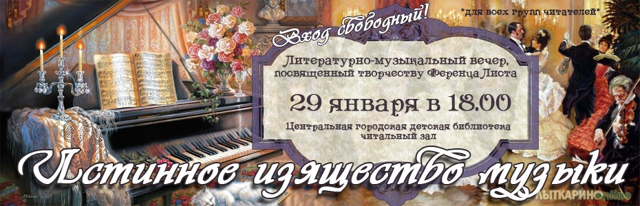 Центральная городская детская библиотека В читальном зале Центральной городской детской библиотеки 29 января в 18.00 состоится литературно-музыкальный вечер, посвященный жизни и творчеству венгерского композитора Ференца Листа.