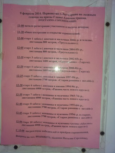 9 февраля на лыжной трассе «Волкуша» пройдет первенство города Лыткарино по лыжным гонкам. Регистрация участников на стартовой поляне с 11-00, общее построение и открытие соревнований в 11-30. Старт первого забега в 12-00.