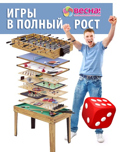 Продолжаем играть в "Игры в полный рост"! Привычные настольные игры меняют формат и предлагают новые опции. Теперь фигурка - это Вы сами. Вам предстоит бросать игровые кости, передвигаться по клеткам огромного игрового поля, отгадывать загадки и выигрывать призы!