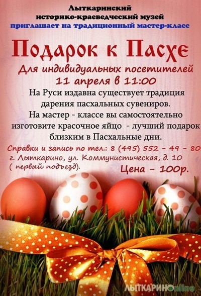 Лыткаринский музей Цена билета: 100 руб. 10 апреля 2015 в 07:30 995 0