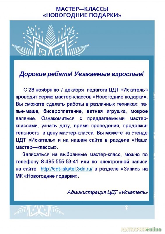 Центр детского творчества "Искатель" вход свободный 22 декабря 2014 в 12:00 774 0