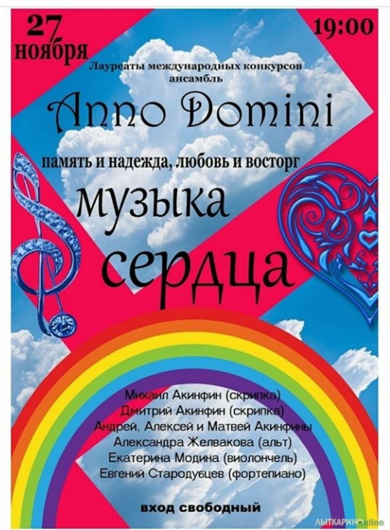 27 ноября 2019 в 16:00   262  3 Детская музыкальная школа  вход свободный 25 ноября 2019 в 16:00   444  0 ДК "МИР"  вход свободный