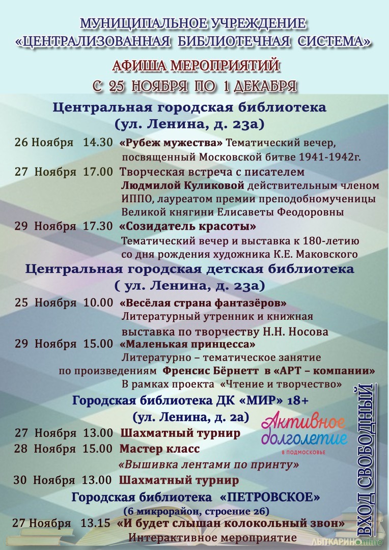 22 декабря 2019 в 19:00   376  0 Лыткарино   22 декабря 2019 в 19:00   360  0 Библиотеки  вход свободный