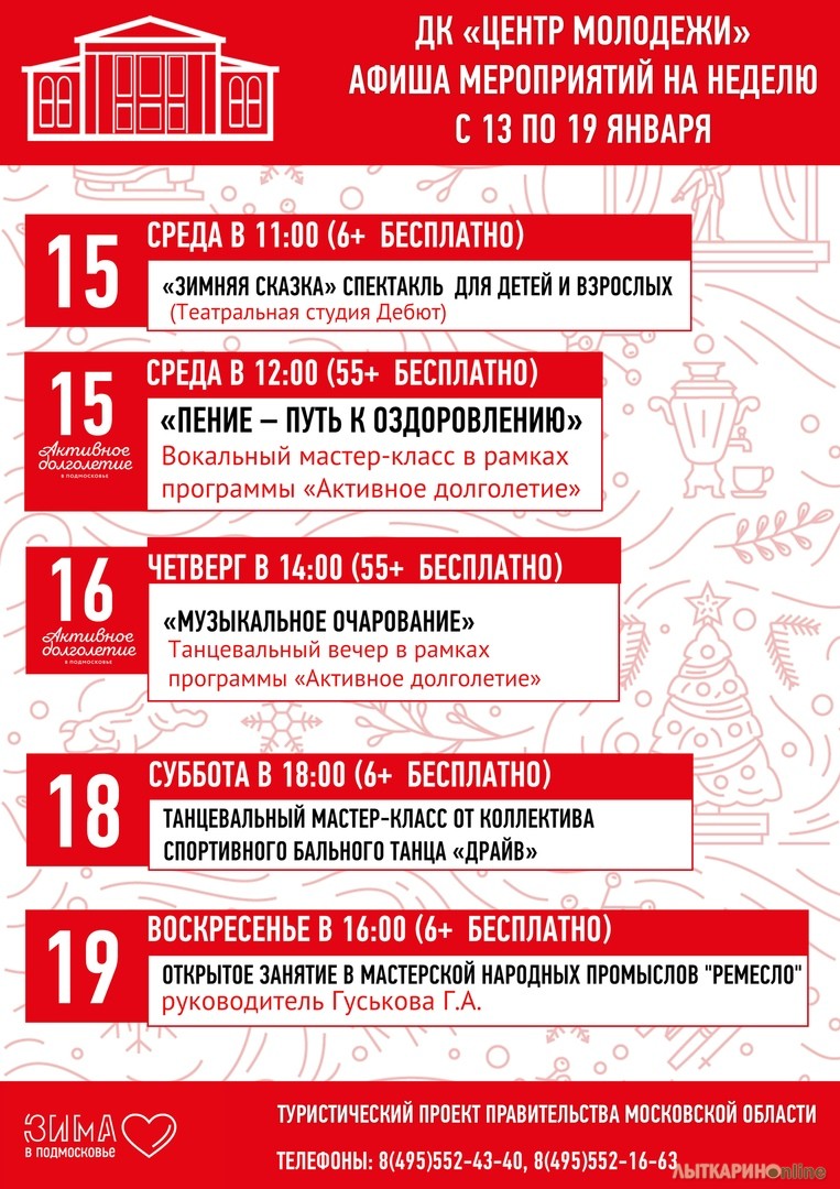5 января 2020 в 19:00   1079  0 Лыткарино  вход свободный 5 января 2020 в 16:00   908  0 ДК "Центр молодежи"  вход свободный