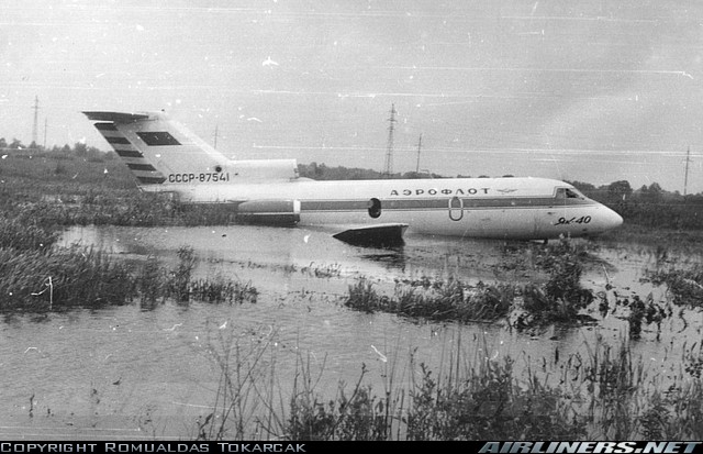 вот вам пример Як-40 выпущен в 1973 году. Первая фотка сделана после вынужденной посадки в 1976 году, а вторая в прошлом