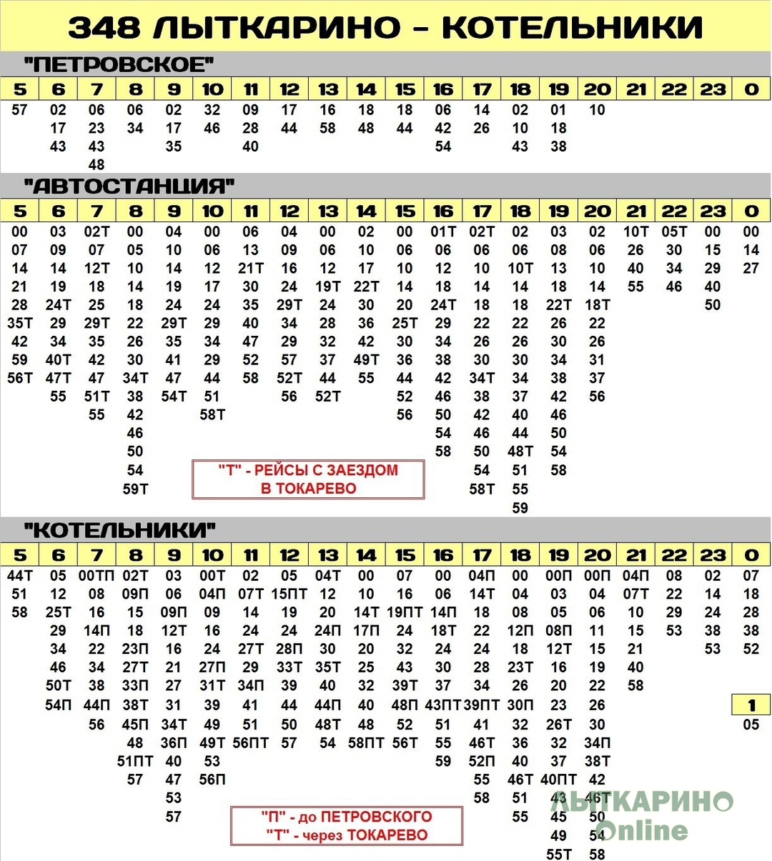 Расписание 348 Лыткарино-Котельники (БУДНИ) ⠀ Прислал Сергей Жлобо _____ Очень жаль, что перевозчики, администрация и прочие ответственные люди никогда не оповещают об изменениях в расписании (могли бы и прислать в городские паблики и на сайт). Всю информацию приходится выуживать то у водителей, то по другим каким-то каналам. Спасибо Сергею, что присылает иногда информацию об изменениях.