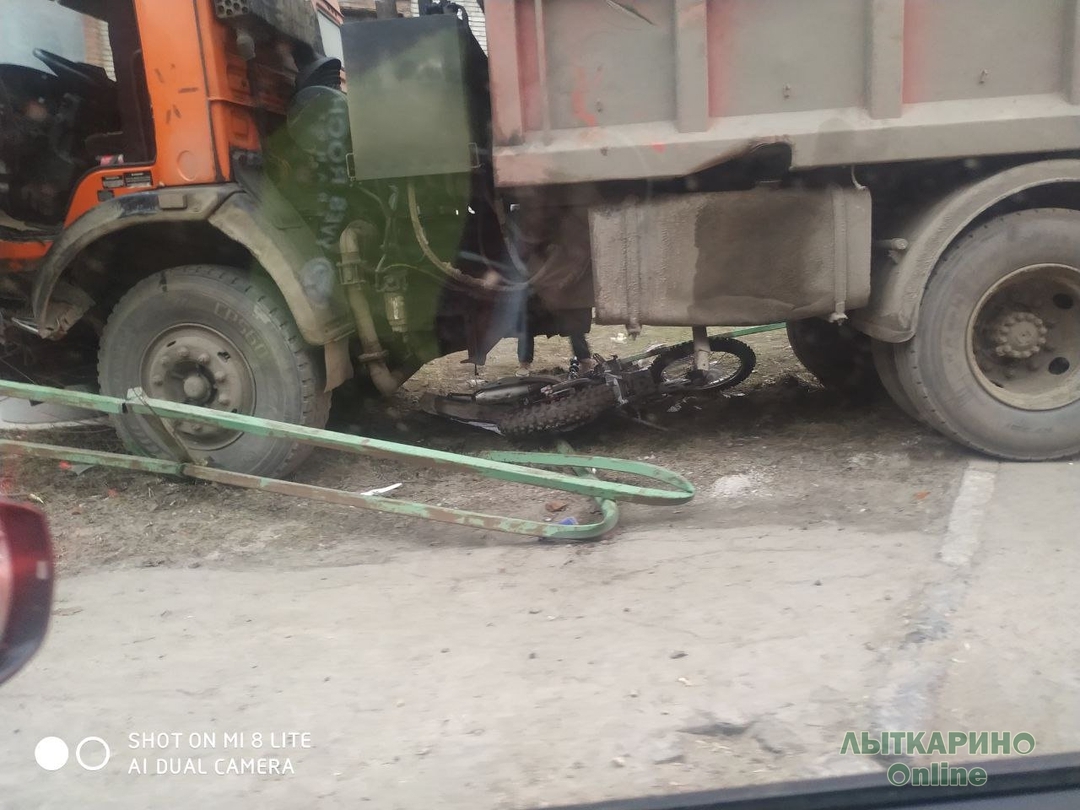 На лесной камаз переехал мотоцикл и врезался в машину и столб. Где водитель мотоцикла и что с ним не известно, но скорой рядом нет.