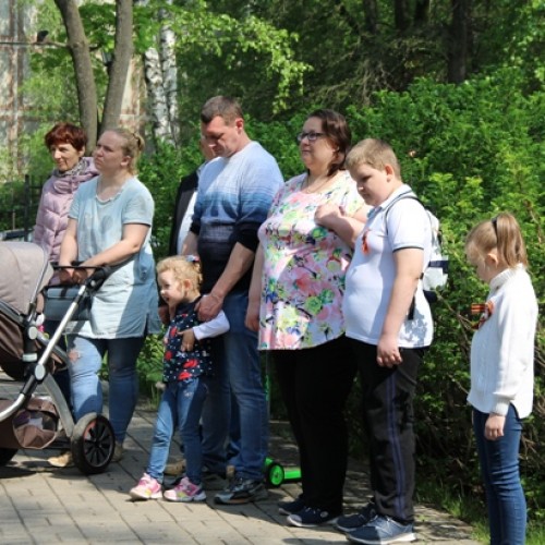 В конце мероприятия была сделана коллективная фотография с Георгиевской лентой, а всем посетителям были розданы черно-оранжевые ленточки, которые стали символом памяти о Победе в Великой Отечественной войне, знаком вечной признательности ветеранам, освободившим мир от фашизма.