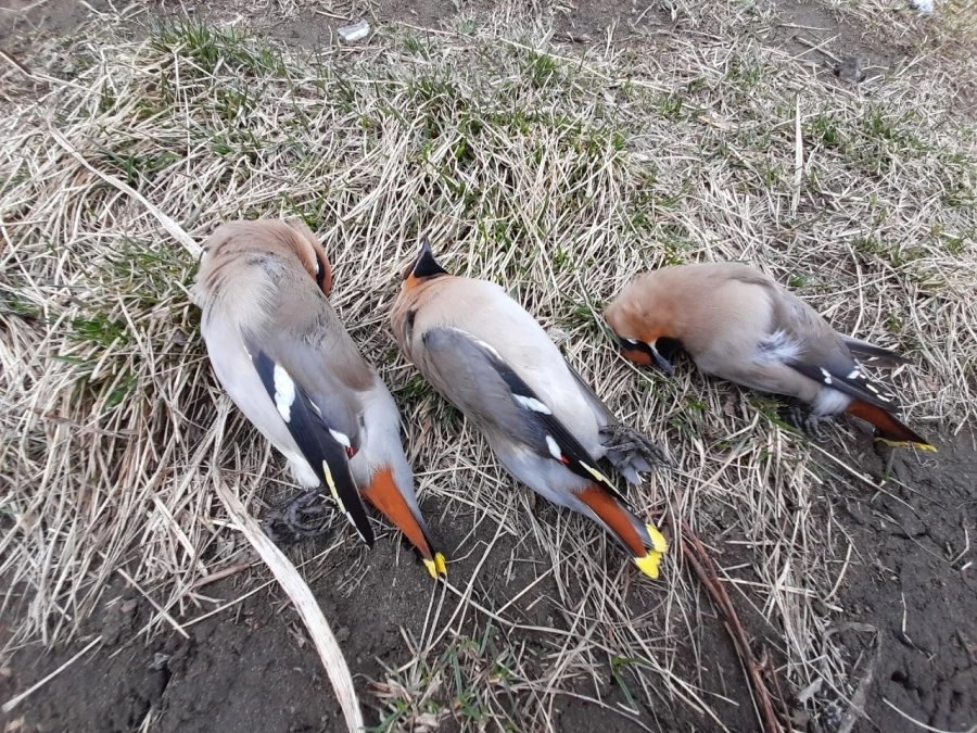 Наевшись забродивших ягод рябины, калины и боярышника, которые остались с осени птицам может стать плохо и они могут перестать летать или просто лежать на земле.