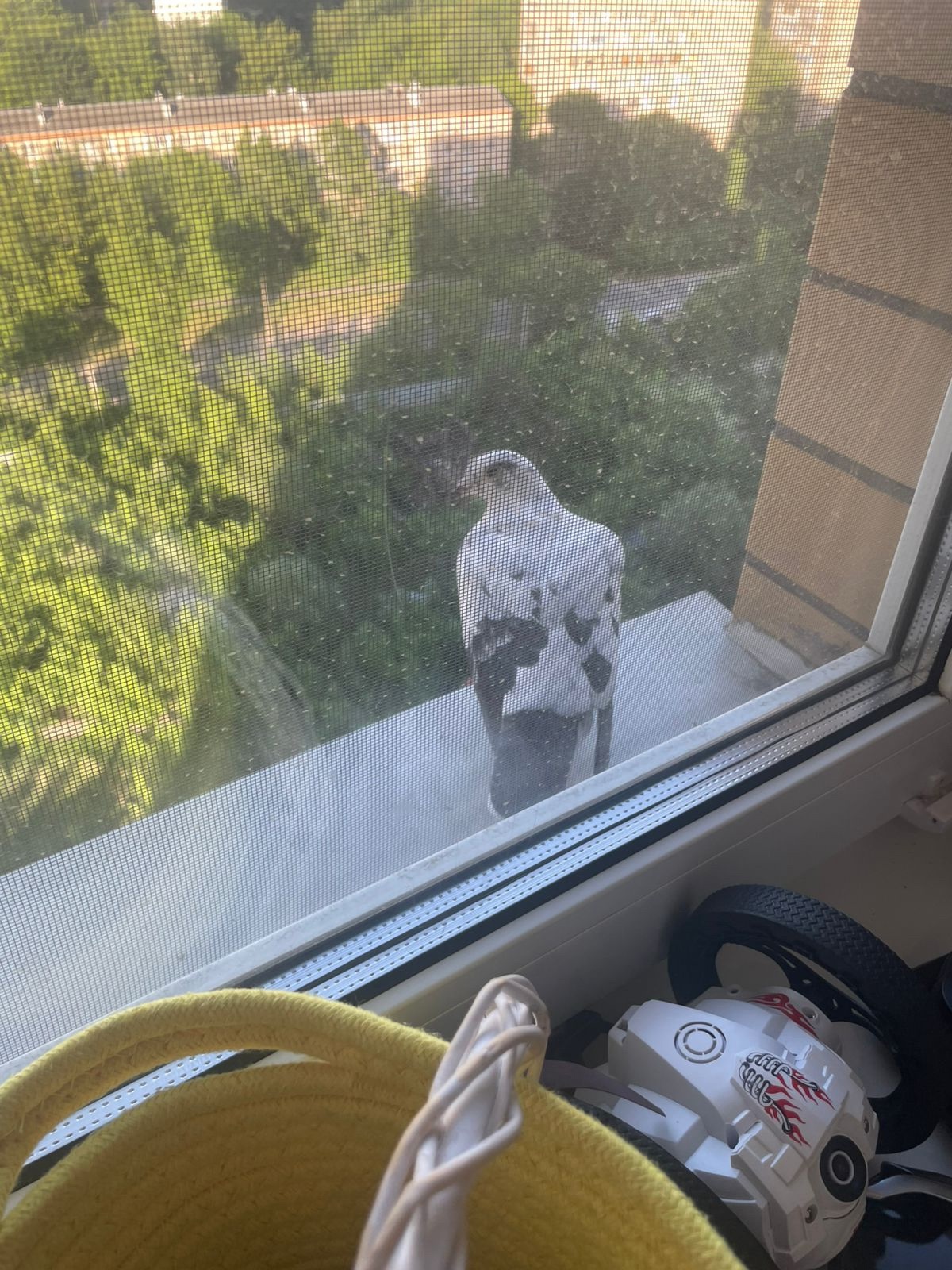 Прилетел ручной голубь уже четыре часа сидит . Может потерялся ?