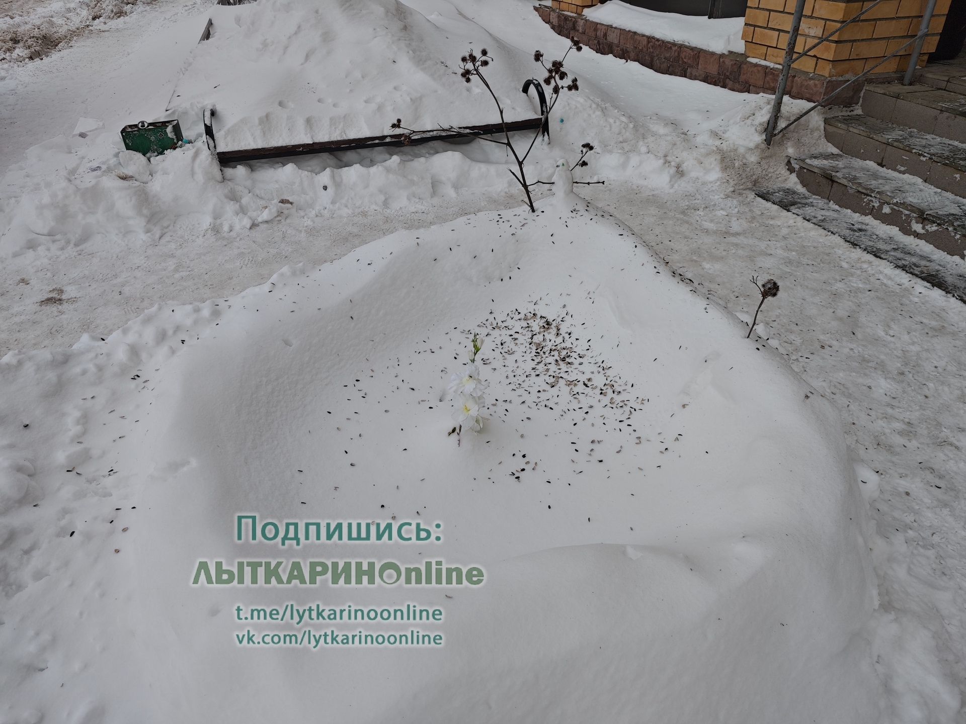Кто-то так заботливо сделал зимнюю клумбу, а другие "украсили" шелухой от семечек.