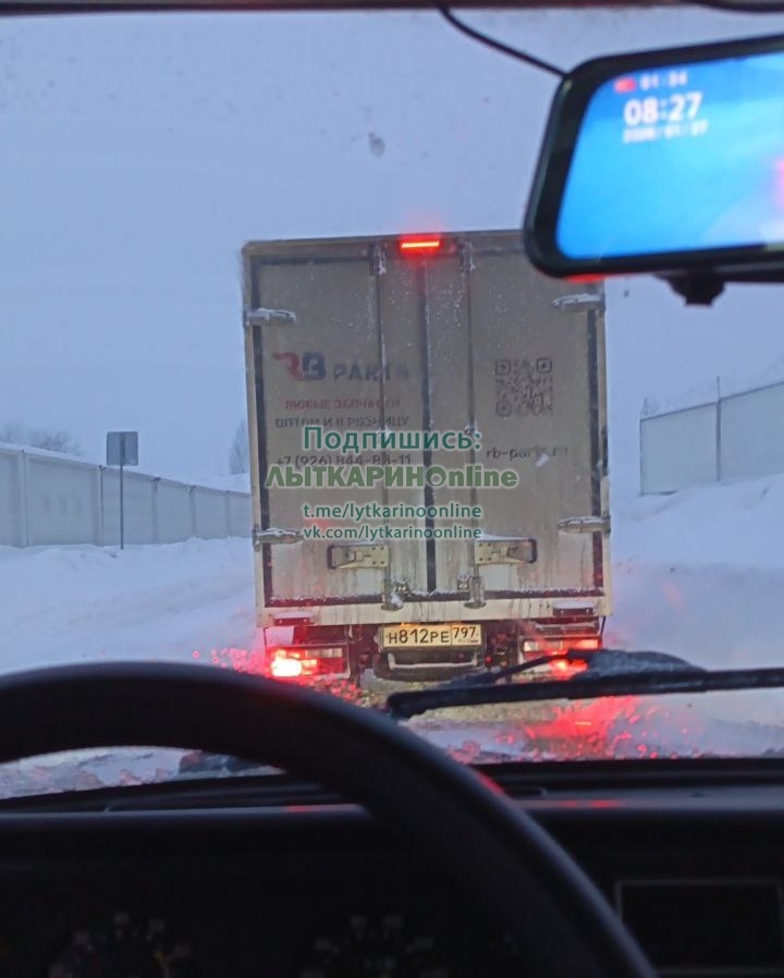 https://t.me/lytavtoНа Колхозной, как всегда, в горку не может подняться фура (вот куда вы в такую погоду?). На пьяной буксуют грузовики и тоже пробка. Выезд на Новорязанку стоит мёртво, а ведь уже почти 9.