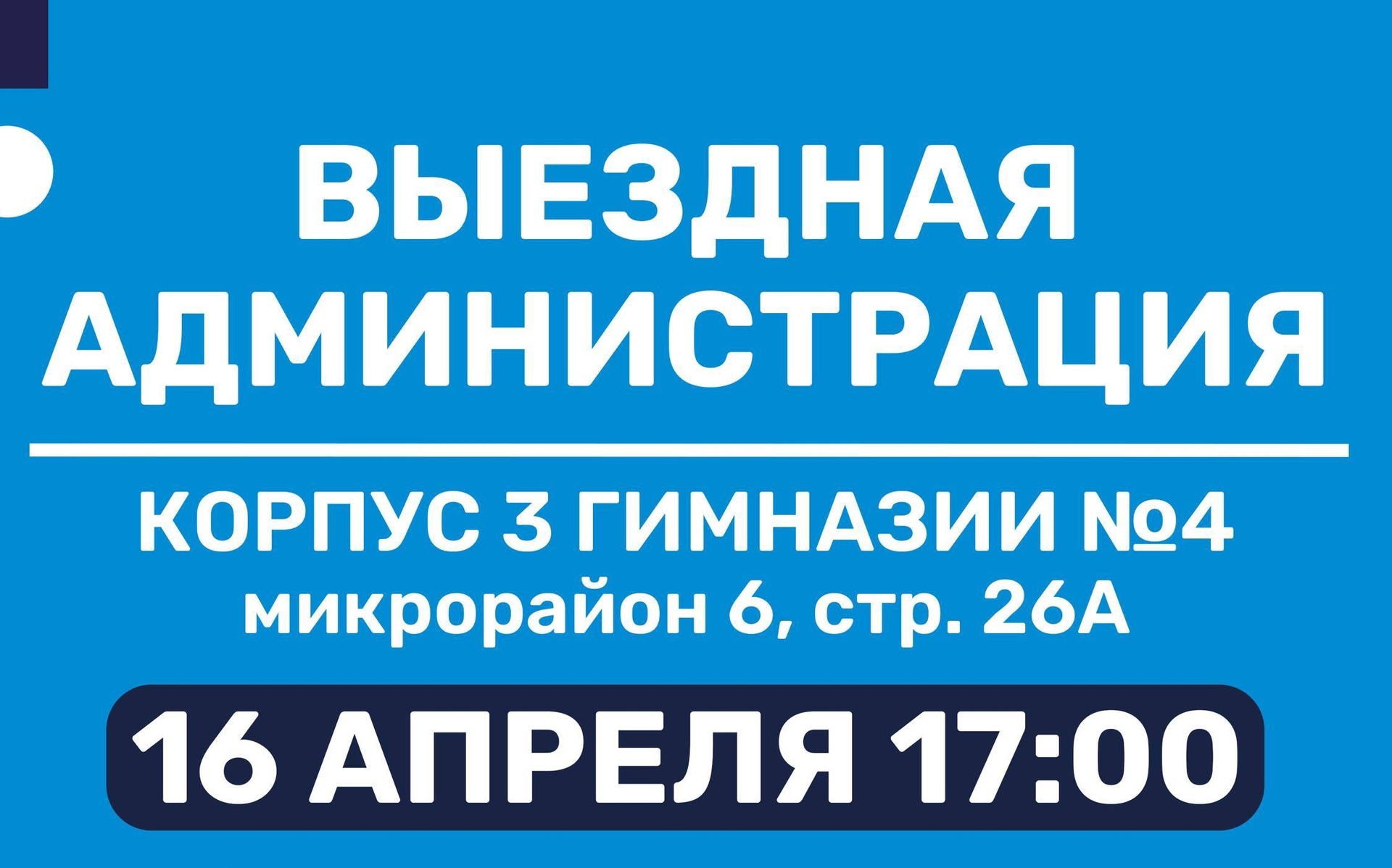 Очередной открытый приём жителей в формате «Выездная Администрация», пройдёт 16 апреля в 17:00 по адресу: микрорайон 6, стр. 26А (новый корпус гимназии № 4).