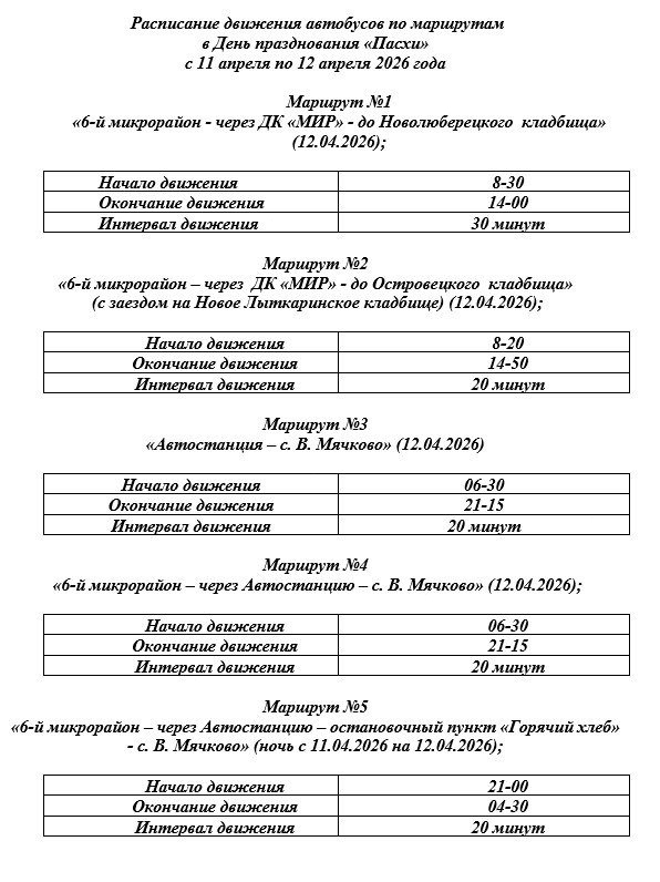 Обновлённое расписание бесплатных маршрутов общественного транспорта в день празднования Пасхи.
