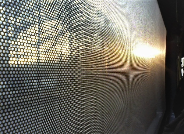 Успокойтесь, это не у вас в дорогом телефоне испортилась картинка. Это портится зрение у пассажиров маршрута 393, которые возят на своих бортах прозрачную рекламу. Не знаю, как молодые, а у некоторых не очень молодых людей, наступает очень не удобная рябь в глазах, от которой последние начинают болеть. Мало того, что эти сетки почти полностью перекрывают обзор улицы, особенно в сумерках, так еще и для здоровья вредные. Ну, это же пустяк. Главное, что рекламу видно и это очень нужно и важно.