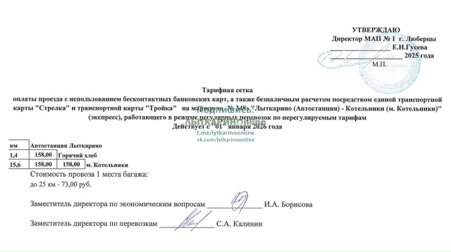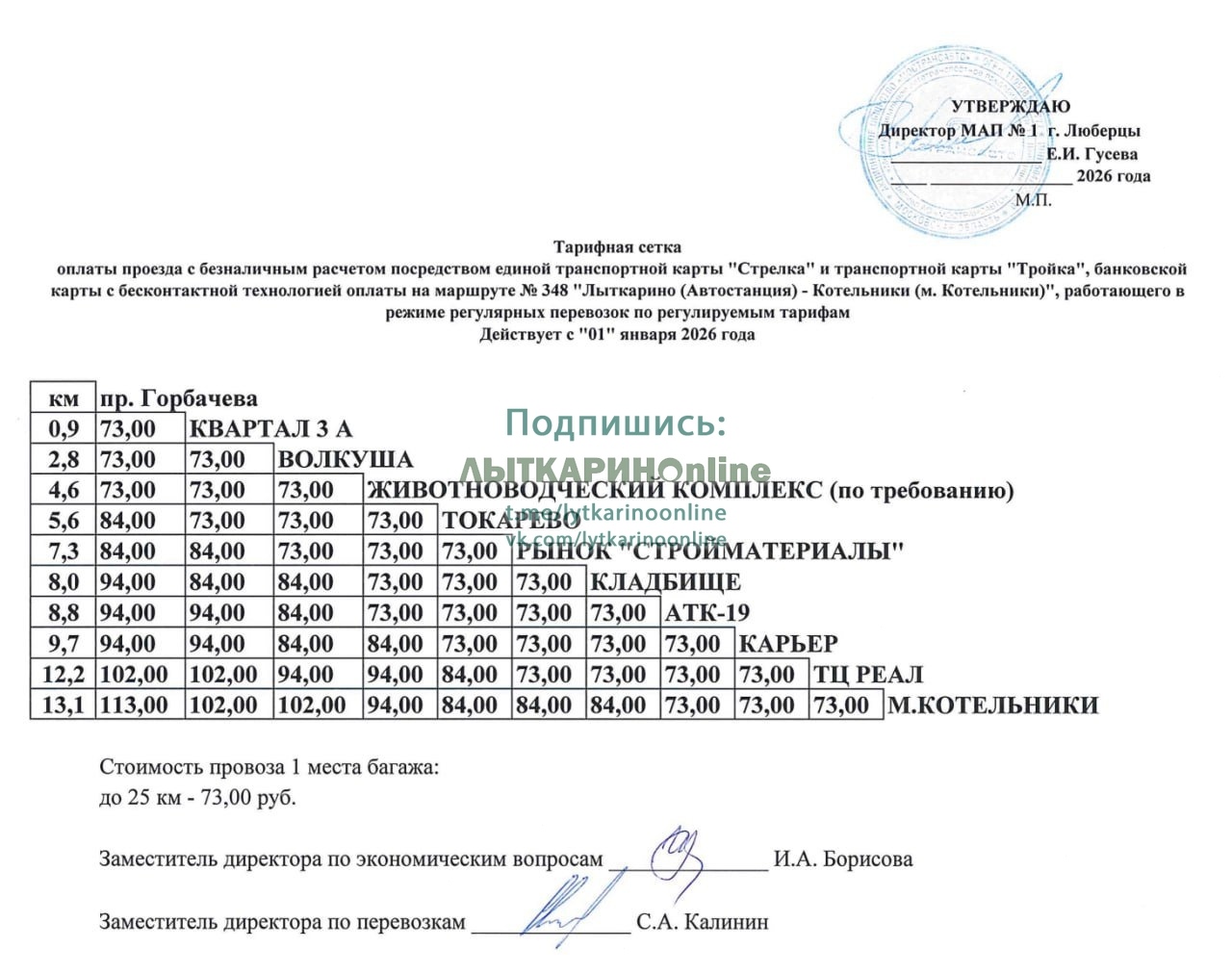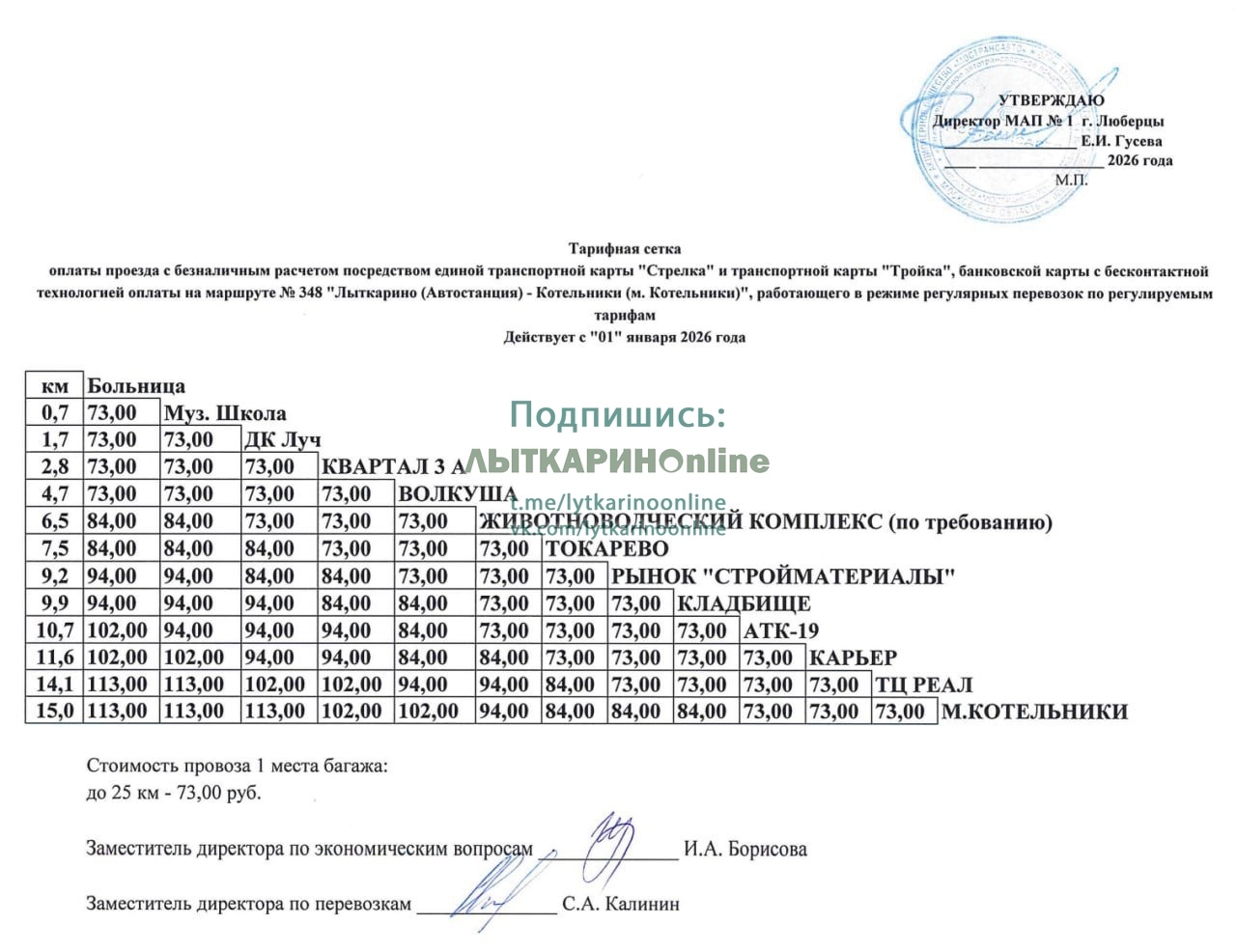 348 экспресс от Автостанции до Котельников теперь стоит 158 рублей. Обычный от Петровского, экспресс от Петровского - 130 рублей. Обычный от Автостанции - 113 рублей. По городу - 73 рубля. Все тарифные сетки прикрепляем. 👉 @lytkarinoonline✍ Мы в MAX: https://max.ru/lytkarinoonline