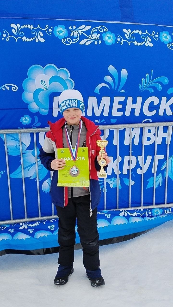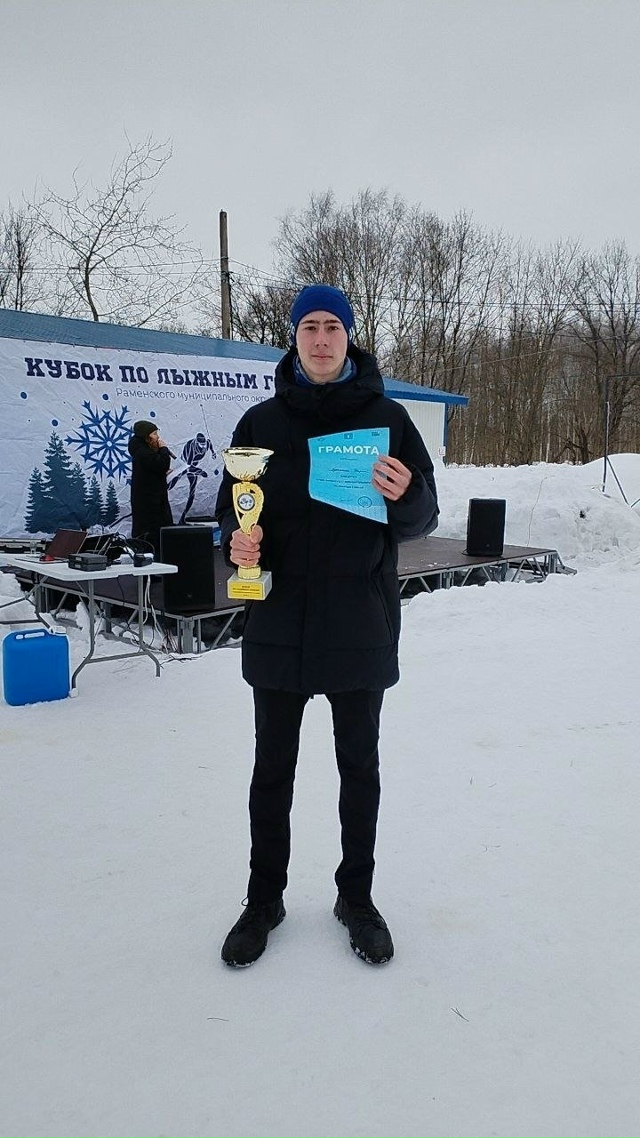 Кирилл Хромышкин среди юношей 17–18 лет выиграл три лыжные гонки и получил 🏆Кубок и подарок от Раменского муниципалитета.